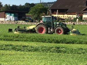 Gras mähen mit Schwadzusammenführung
